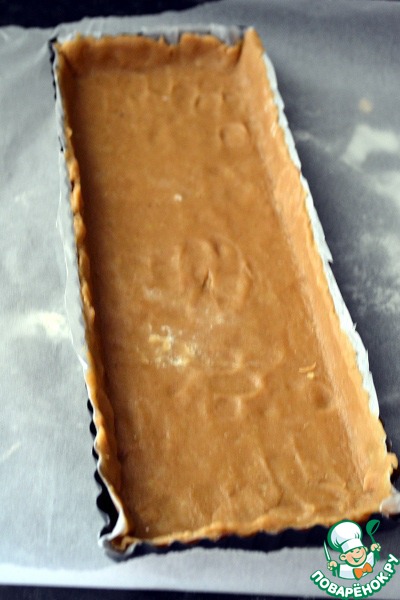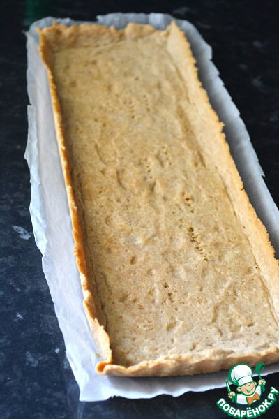 На тесто положить бумагу для выпечки (можно использовать ту, которую брали для раскатки теста). Посыпать горохом и выпекать около 15 минут при темп-ре 170 град. Затем убрать бумагу и горох и печь еще 5-7 минут.