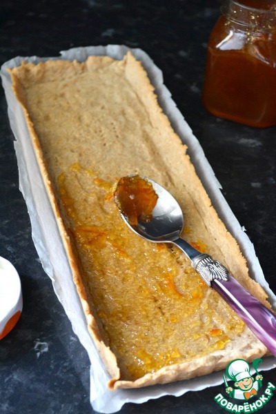 Тарт с кофейным муссом из белого шоколада и апельсиновым джемом