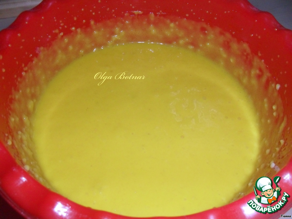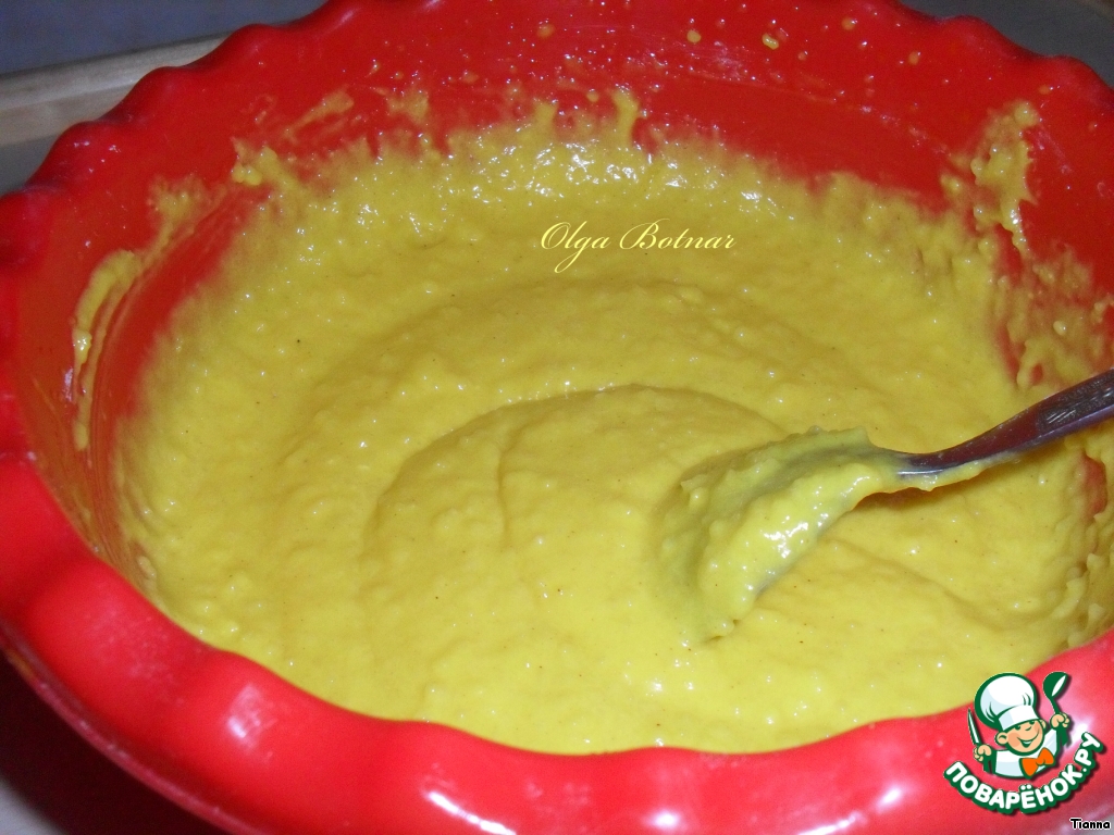 В желтково-кукурузную смесь добавить муку и корицу. Перемешать.