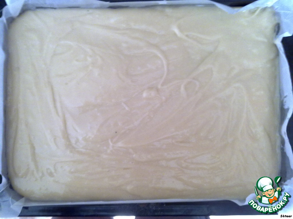 Застелить противень бумагой и распределить на нем получившееся тесто. Выпекать при температуре 160-170 градусов около 20 мин.