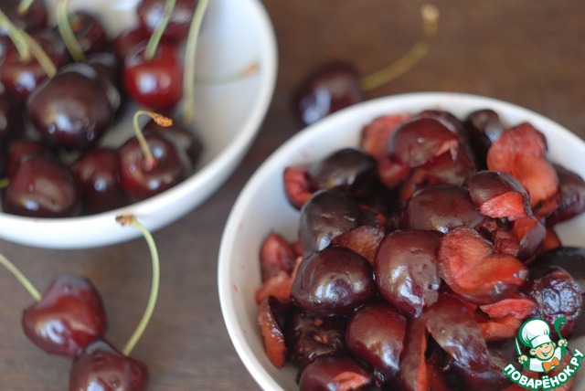 Вишню или черешню необходимо помыть, обсушить и удалить косточки.
