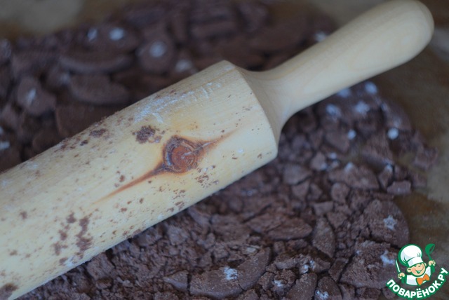 Духовку разогреваем до 180С. Печенье измельчаем в мелкую крошку.