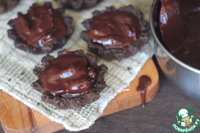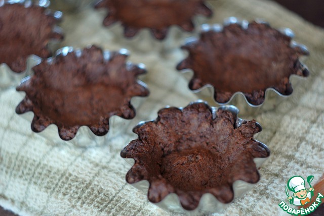 Смешиваем крошку с растопленным сливочным маслом и выкладываем "тесто" в формочки, плотно утрамбовывая. Выпекаем тарталетки 15 минут. Охлаждаем.