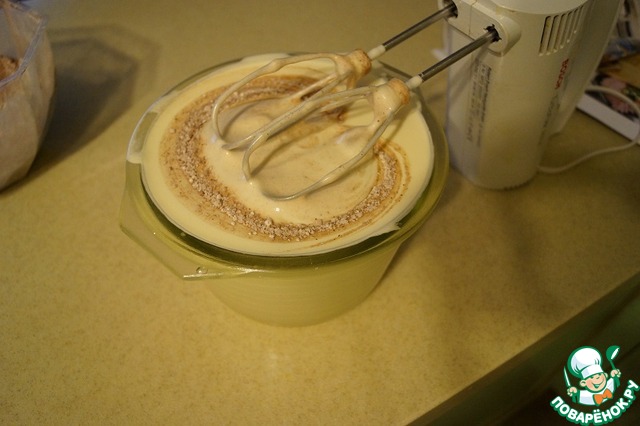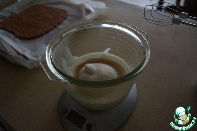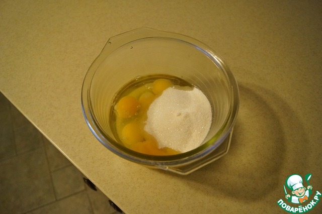 Бисквит можно готовить по своему любимому рецепту, только добавить какао-порошок. Я готовлю бисквит так: шесть яиц смешиваем с 1 стаканом сахарного песка.