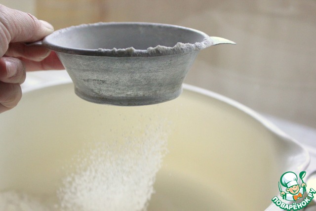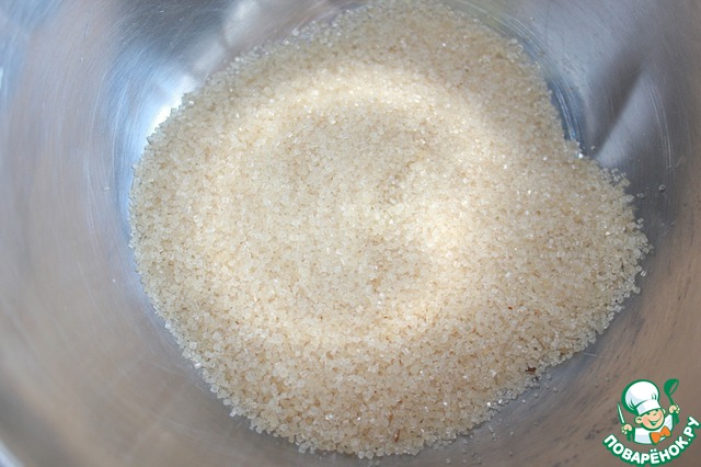 Приготовить бисквит: Заранее просеять муку два раза. Яйца (комнатной температуры) взбивать около минуты на максимальной скорости миксера, постепенно добавляя сахар (80 г). Взбивать 6-8 минут до белой и воздушной массы.
