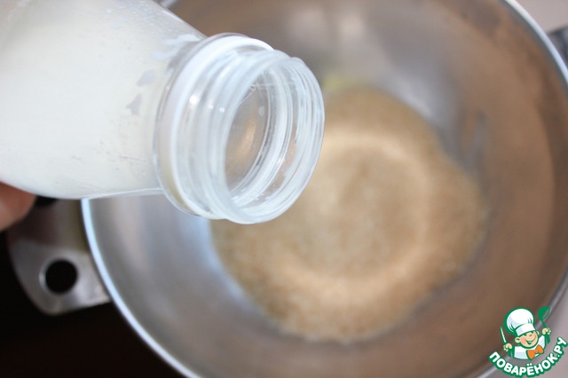 Приготовьте шоколадный крем: Насыпьте в кастрюльку 50 г сахара