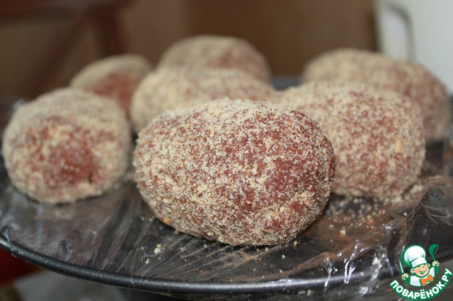 Затем обваляйте "картошку" в оставшихся крошках миндаля.