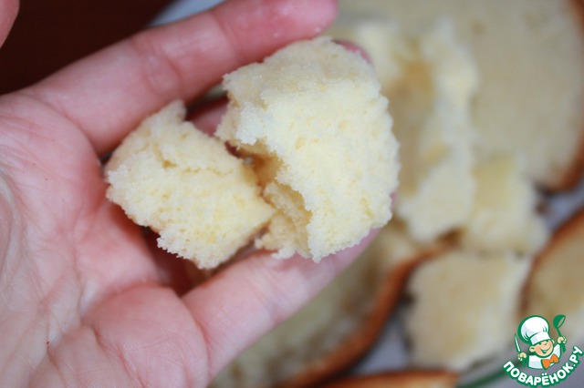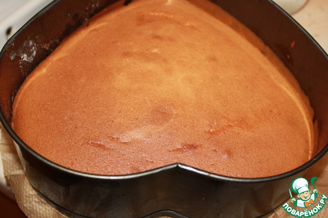 Выдержать бисквит после выпечки 12-24 часа. Оставляя бисквит на ночь, обязательно уберите его в пакет, когда остынет.