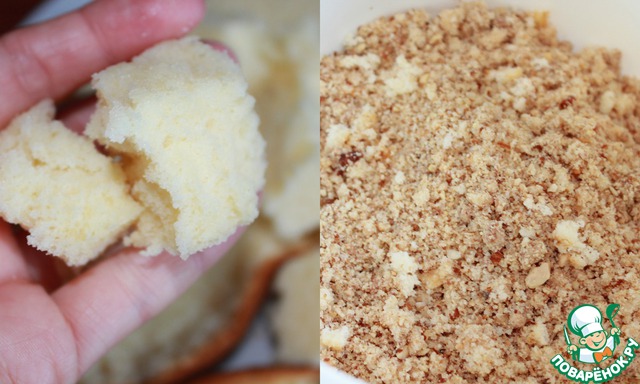 Измельчите в комбайне в мелкую крошку бисквит и орехи (половину миндальной крошки отложить отдельно). Пересыпьте крошку в большую миску.