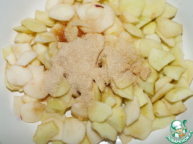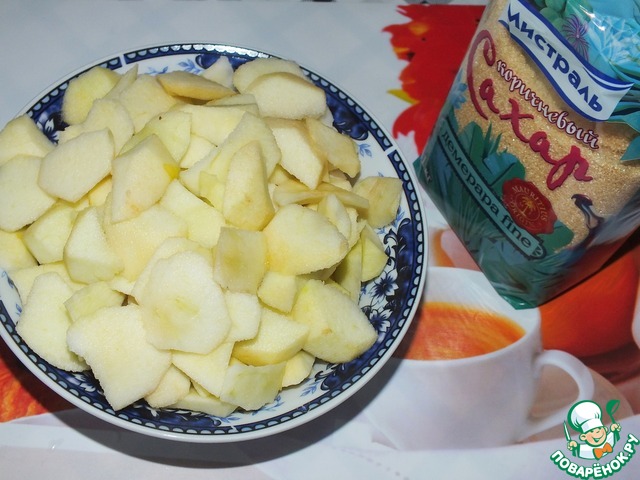 Тем временем очистить яблоки от кожуры и нарезать тонкими дольками