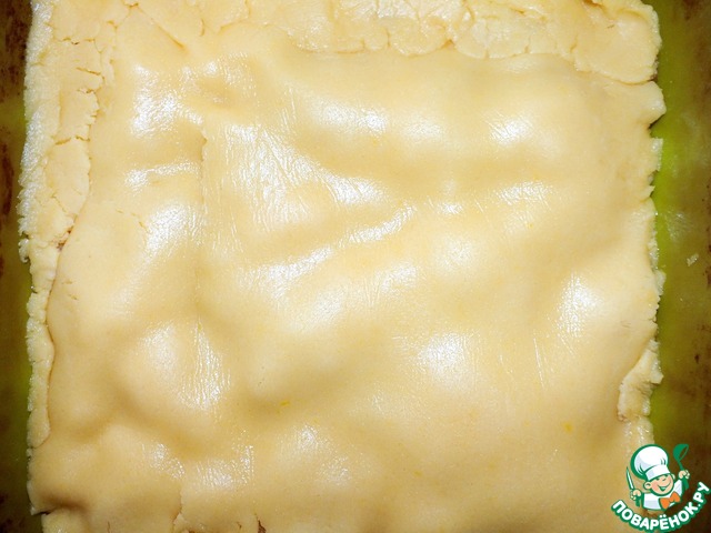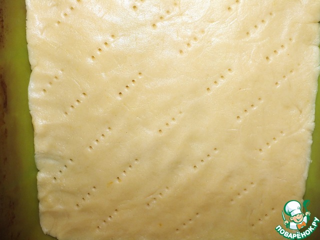Одну часть теста распределить по форме (у меня силиконовая 17х17), наколоть вилкой и отправить в горячую духовку на 10 минут при t=180*
