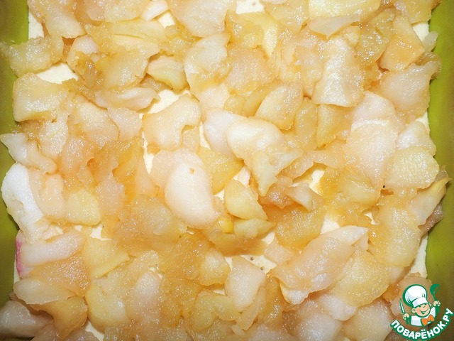 Через 10 минут достать тесто из духовки, распределить не нем яблоки