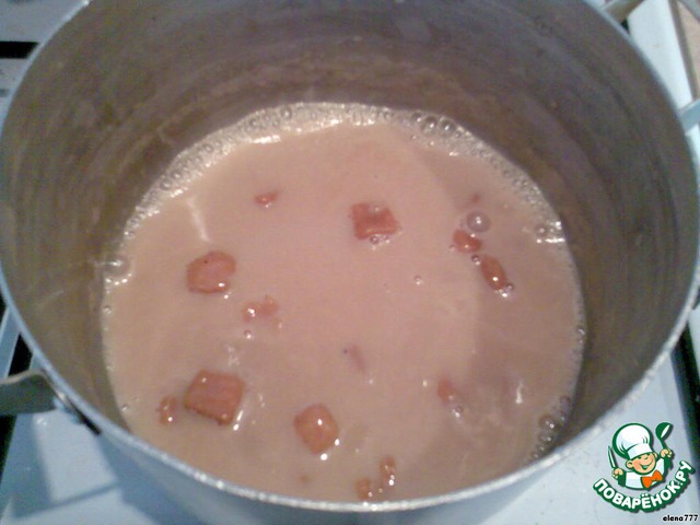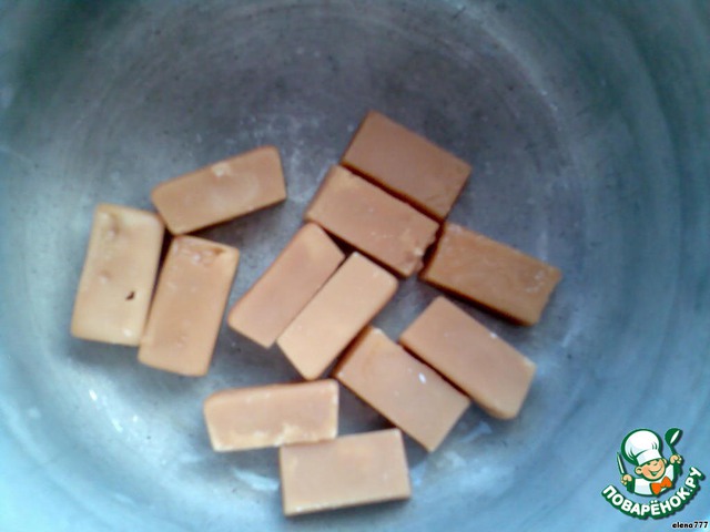 В отдельной посуде смешать оставшееся холодное молоко и муку, чтобы не было комочков, и вылить эту смесь в кипящее молоко с растопленными конфетами, постоянно помешивая. Проварить до загустения. Остудить.