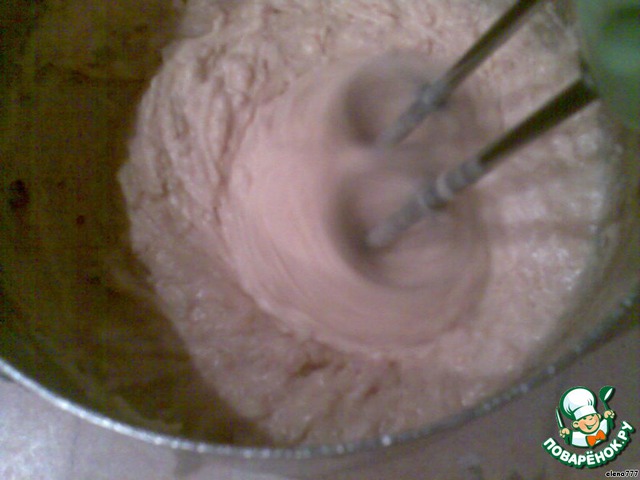 Остывшую массу взбить с размягчённым сливочным маслом.