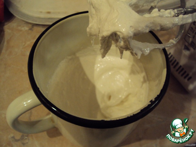 Приготовьте крем: белок взбить с сахарной пудрой в пышную пену.