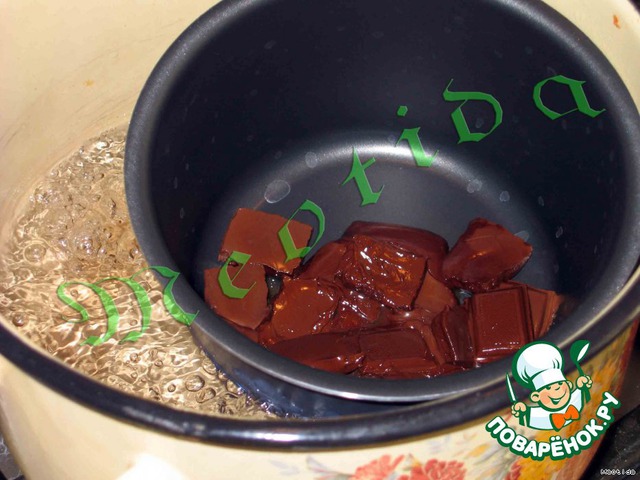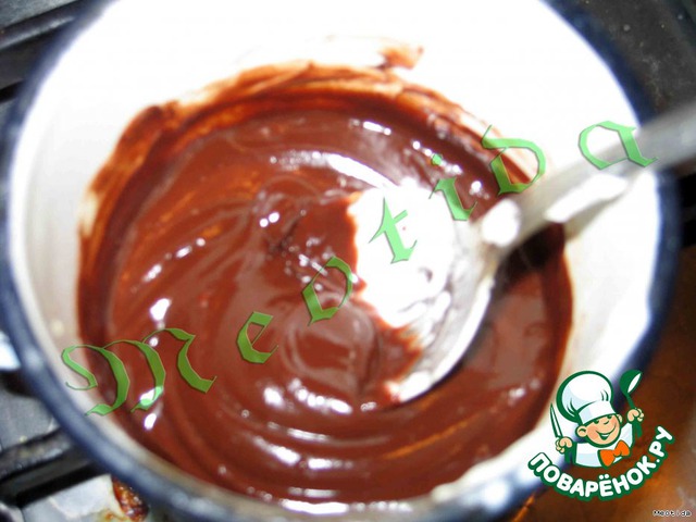 сметану и шоколад (100гр) положить в эмалированную кружку и на медленном огне довести до состояния однородности. Глазурь слегка остудить.