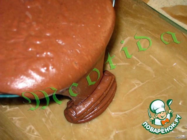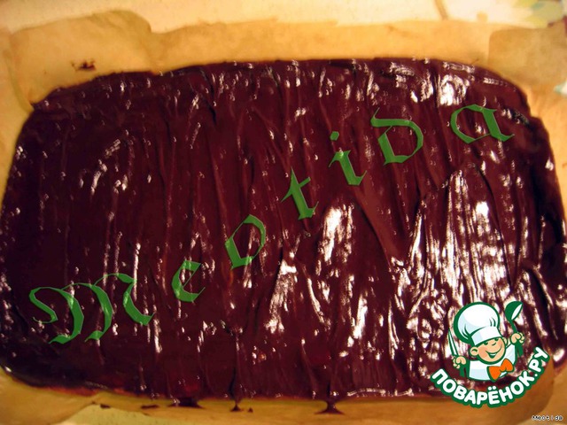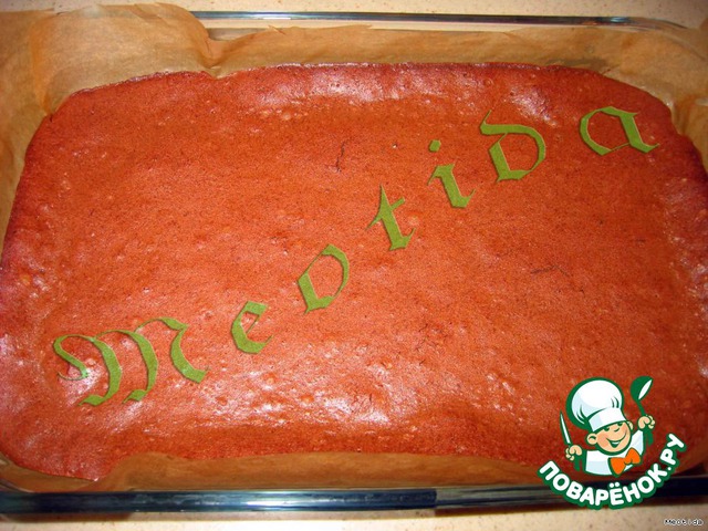 Bыпекать корж в разогретой до 180°С духовке 35 минут. Bынуть из духовки и остудить.