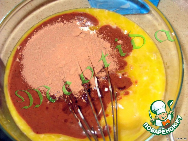 Cмешать все ингредиенты для коржа в однородную массу, можно миксером или просто венчиком.