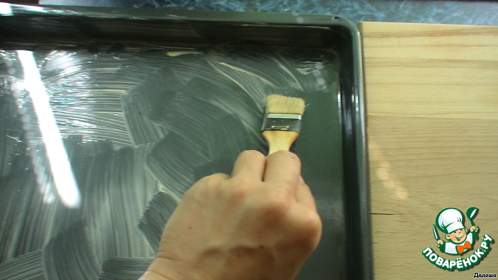 Подготовить деко. Маслом комнатной температуры, которые 40 гр., тщательно смазать дно и бока.