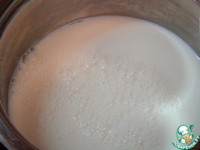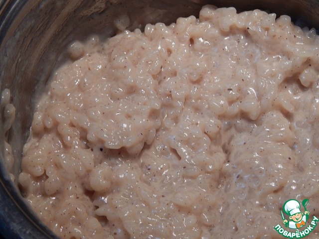 Молоко доводим до кипения, солим его и добавляем ванильный сахар. Затем выкладываем рис и варим, помешивая, 10 минут.