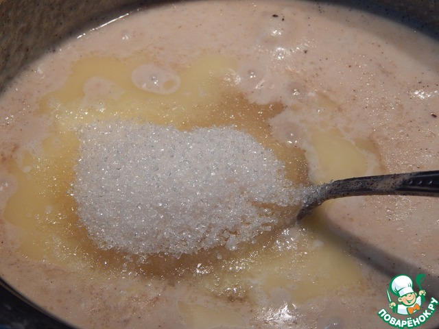 Далее добавляем в рис масло и сахар, и, продолжая помешивать, варим рис еще 10 минут.