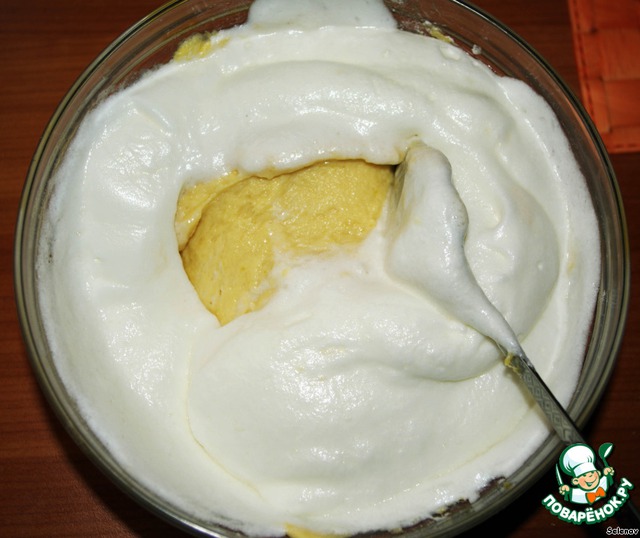 -яичные белки взбить в крепкую пену и осторожно подмешать в тесто