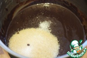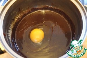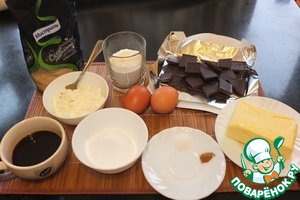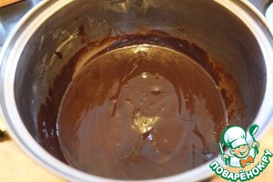 Шоколад, сливочное масло и кофе выкладываем в кастрюльку и ставим на огонь. Перемешиваем до однородной гладкой массы.