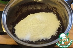 В последнюю очередь добавляем муку, соль, перемешиваем.