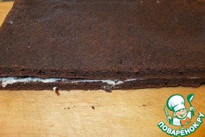 Т. к. форму я выбрала не подходящую, брауни получились тоненькими. Поэтому я разрезала корж пополам, одну половину промазала кремом, а вторую половину положила сверху.
