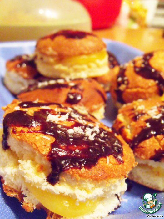 | Нежнейшие и вкуснейшие пирожные "Виктория" с лeгким лимонным кремом (Lemon Curd, за рецепт спасибо chadeyk'е) и мягкими бисквитными коржами. |