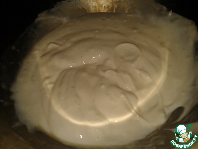 Сливки взбить в густую пену и об'единить с йогуртовой смесью.