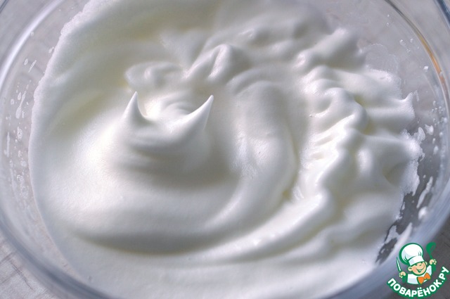 1. Белки отделить от желтков и взбить в крепкую пену.