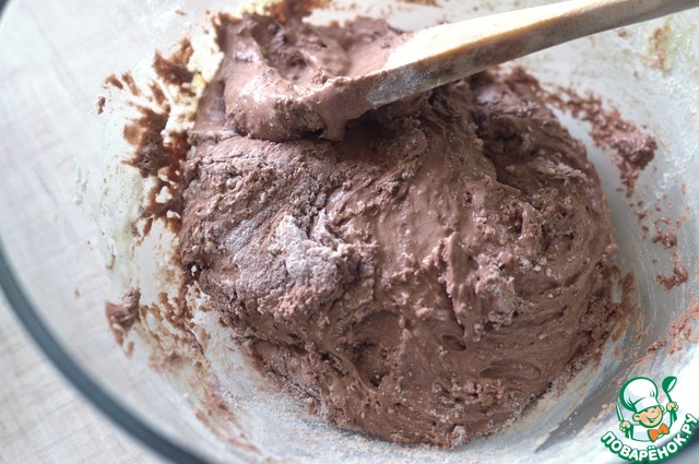 3. Затем ввести просеянную муку, перемешать лопаткой.