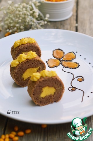 | Сейчас у нас начался сезон облепихи. Яркая, ароматная, с легкой кислинкой, а еще и полезная. Хочу угостить вас шоколадным рулетом с ароматным, нежным кремом. Готовится просто и быстро. |