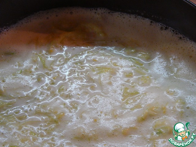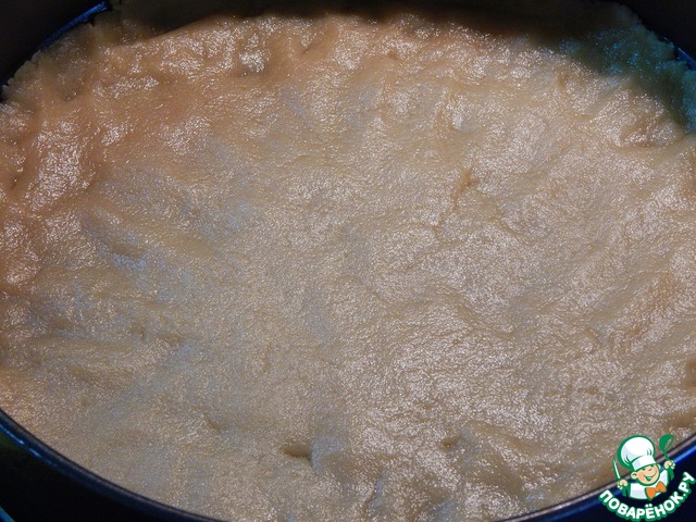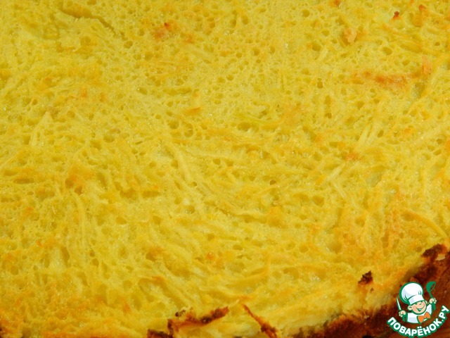 Достаем корж из духовки, выливаем на него (на горячий) кабачковую массу и отправляем опять в духовку на 20-25 минут, пока масса не загустеет (станет золотистой).