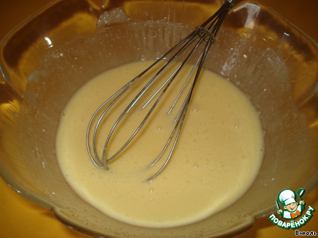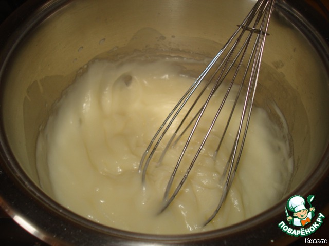 Начнем с крема, чтоб он успел остыть. Отделить белок от желтка и положить его в холодильник. Взбить 3 ст. ложки молока с сахаром (25 г - 1 ст.ложка), желтком и крахмалом.