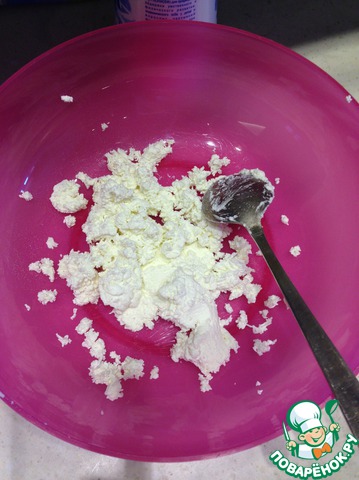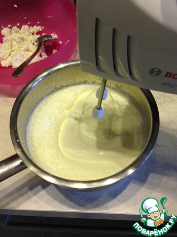 Пока готовится тесто, сделать крем. Для этого протереть творог через сито, в другую миску вылить сливки.