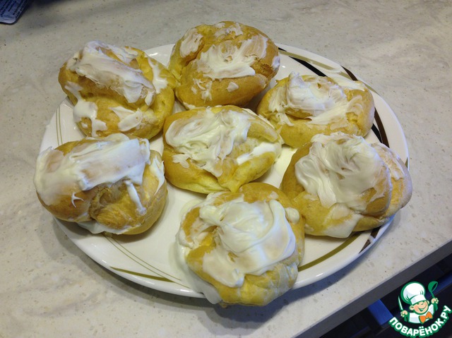 | Шу - это пирожные из заварного теста, начиненные кремом, необычайно нежные и вкусные. Обычно используется заварной или масляный крем, но я наполнила сливочно-творожным и покрыла глазурью из белого шоколада. И не пожалела! |