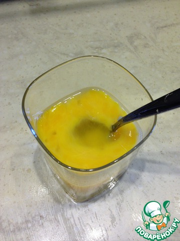 Разбить 5 яиц в отдельную емкость и перемешать. Тем временем включить духовку на 200 градусов, пока делается тесто, она разогреется.