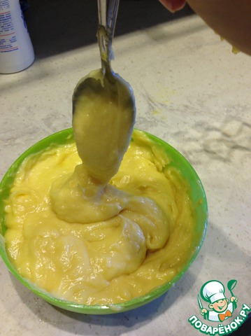 В итоге должно получиться вот такое тесто, спадающее с ложки тяжелой лентой.