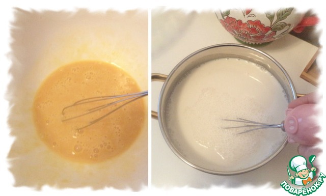 Начнём с Бостон крема. Взбить одно яйцо,3 желтка и ванильный экстракт. В небольшой кастрюльке смешать молоко, сахар, муку и соль.