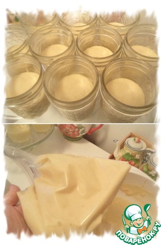Пока крем остаётся горячим, очень аккуратно что бы крем не попал на стенки баночек, заполнить их на 1/3. Я это делала столовой ложкой. Оставить остывать.