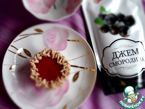 | Чудесные песочные пирожные со сливочным кремом и черносмородиновым джемом. Особенно вкусны после ночи в холодильнике. За рецепт огромное спасибо Ирине Чадеевой, оформление от меня. |