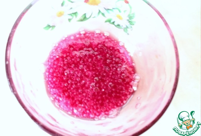 Верхний корж я предлагаю заглазировать. Глазурь я готовила следующим образом: смешать 2 ст. л. джема "Черносмородиновый" с 2 ст. л. воды. Немного нагреть в микроволновой печи, чтобы джем стал более жидким. Протереть смесь через сито. Добавить 5 ч. л. с верхом сахарной пудры и нагреть в микроволновой печи до кипения. Намазать полученной глазурью верхние коржи. Снова нагреть смесь и покрыть вторым слоем. Дать глазури немного застыть (я поставила в холодильник на 5 минут).