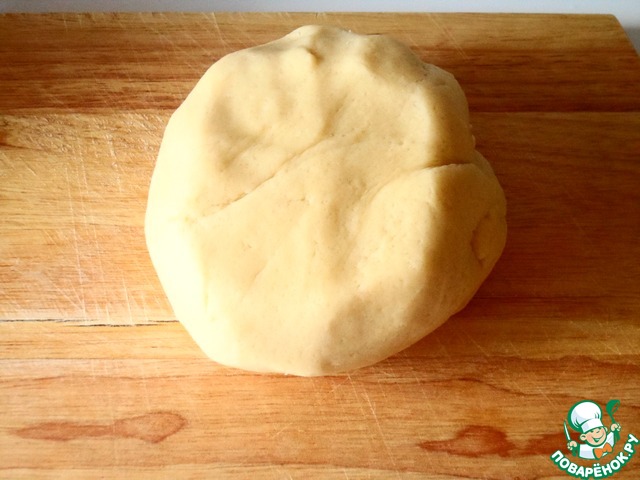 Для теста: взбить миксером размягченное масло, сахарную пудру, яйцо (комнатной температуры) и разрыхлитель. Добавить муку и замесить тесто.