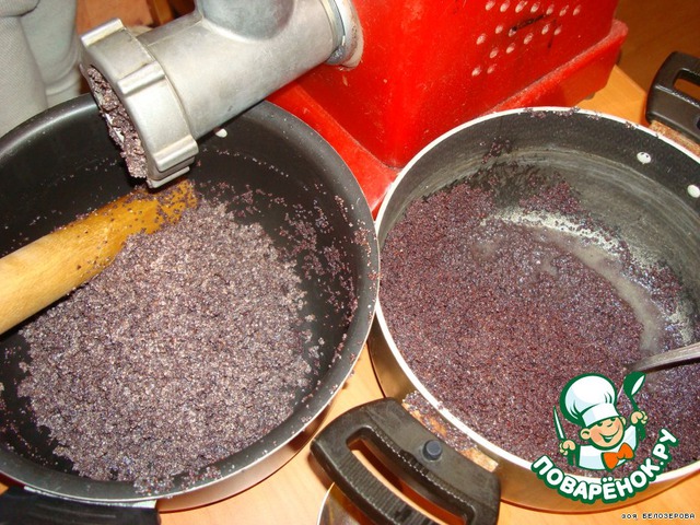 Потом слить воду и перекрутить мак на 2-3 раза через мелкую мясорубку.