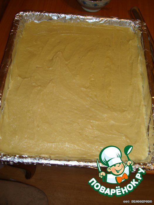 Противень смазать растительным маслом, на него выложить равномерно тесто