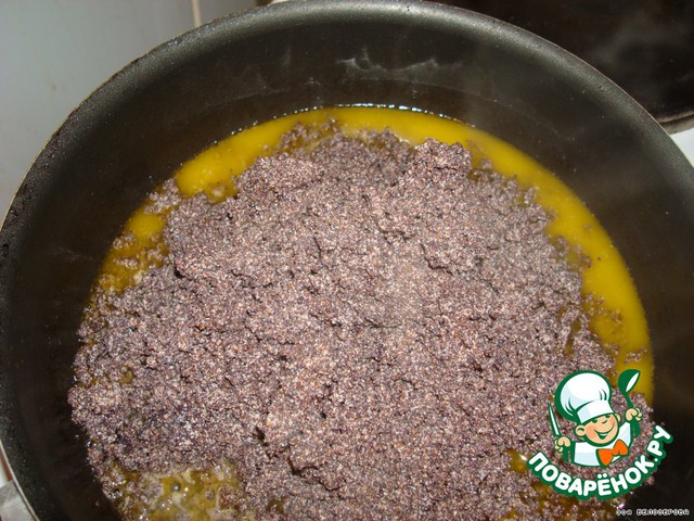 Обжарить мак на 250 гр сливочного масла, переложить в кастрюлю, накрыть крышкой и отставить в сторону.
