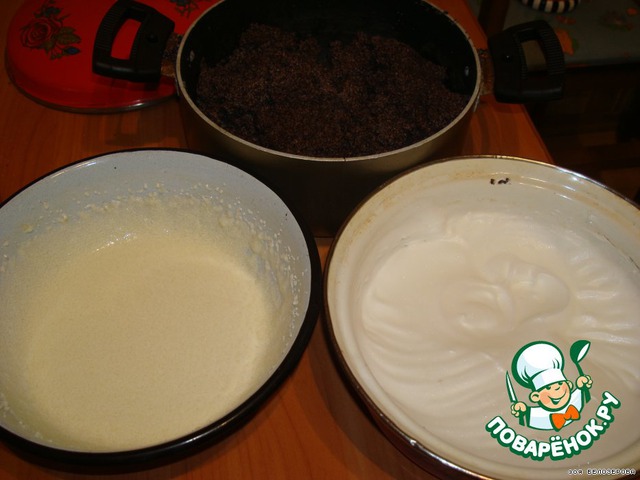 4 белка взбить в пену и тоже в мак.