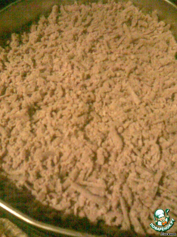 Начнем приготовление десерта с коричневого коржа. Ему надо побыть в холодильнике.